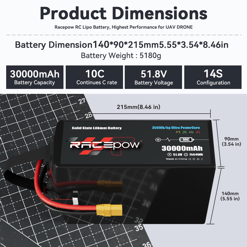 320Wh/kg 30000mAh 51.8V 14S High Energy Density Solid State Battery for Drones Multi-rotor VTOL Mapping