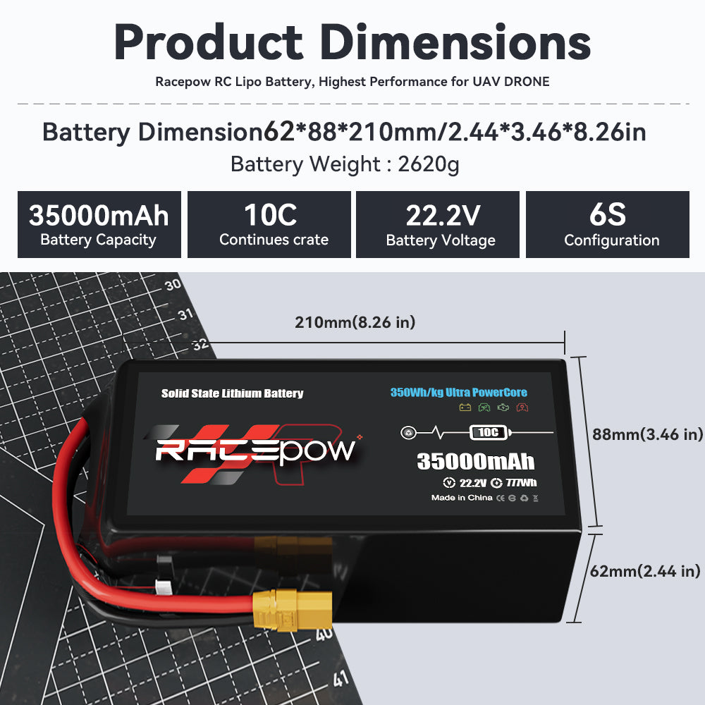 320Wh/kg 35000mAh 22.2V 6S High Energy Density Solid State Battery for Drones Multi-rotor VTOL Mapping