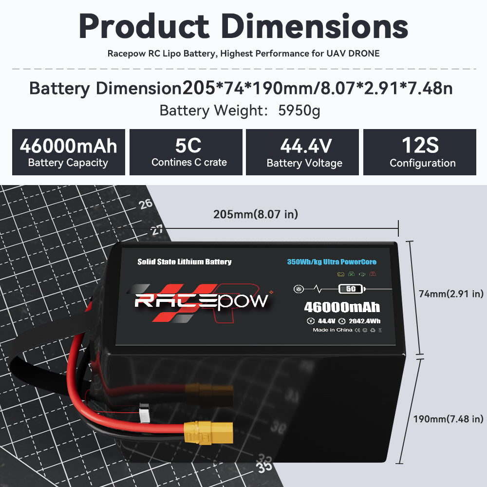 350Wh/kg 46000mAh 44.4V 12S High Energy Density Solid State Battery for UAV