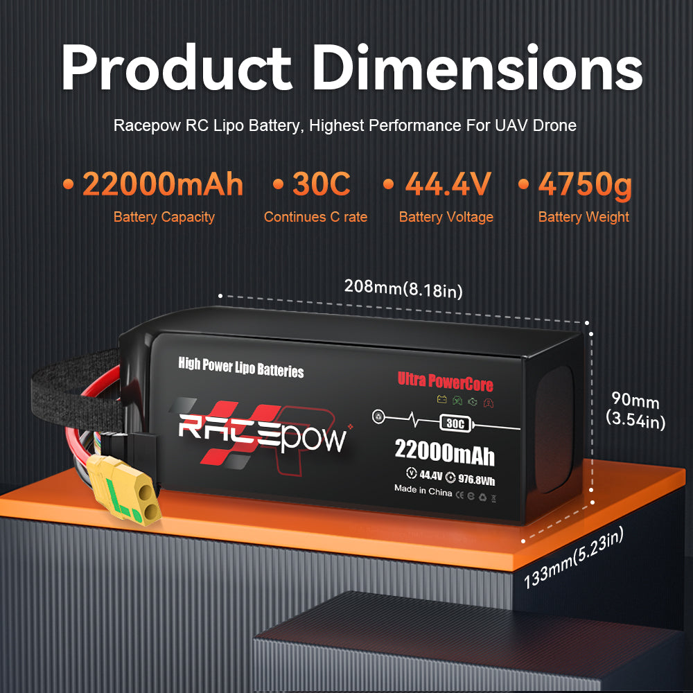 22000mAh 44.4V 12S 30C LiPo Battery for for Agriculture Drones