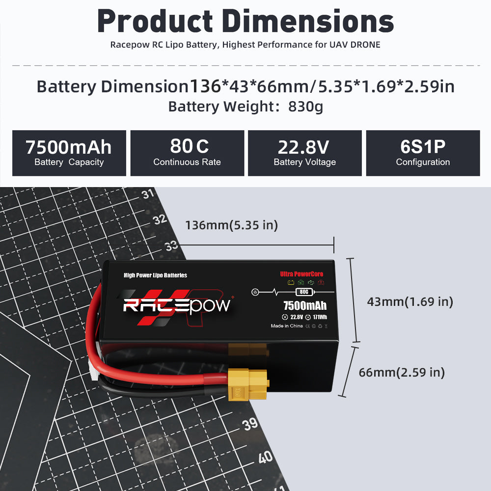 7500mAh 22.8V 6S 80C LiPo Battery for FPV Drone