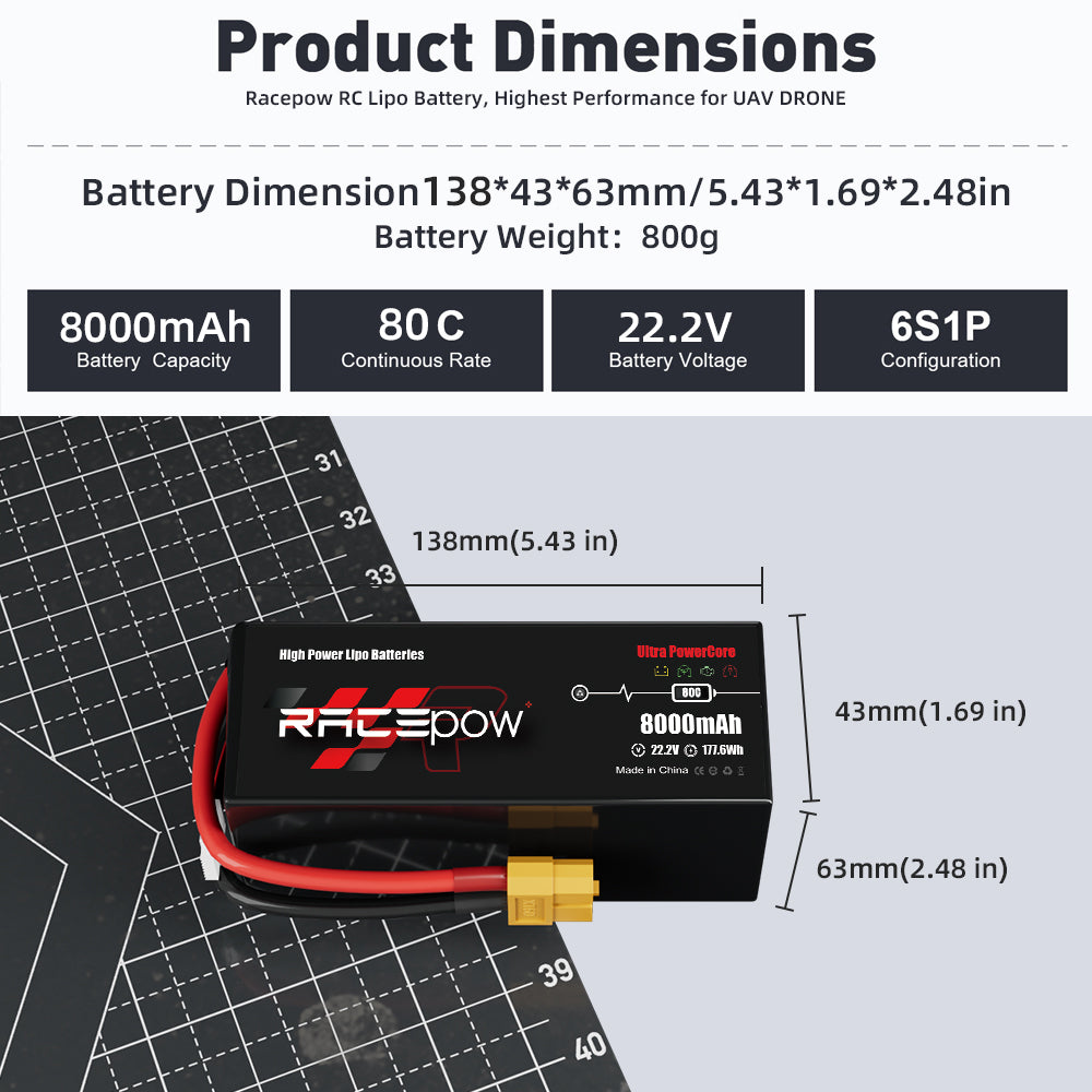 8000mAh 22.2V 6S 80C LiPo Battery for FPV Drone