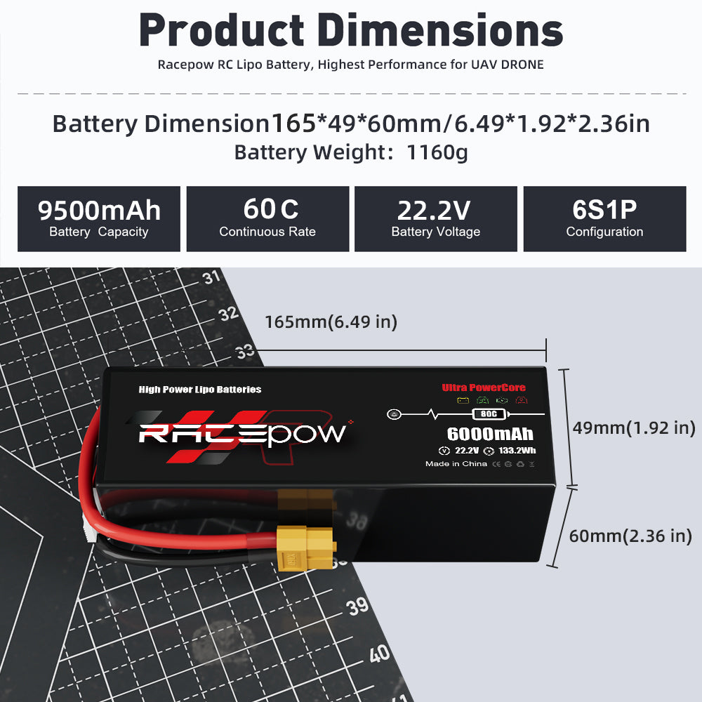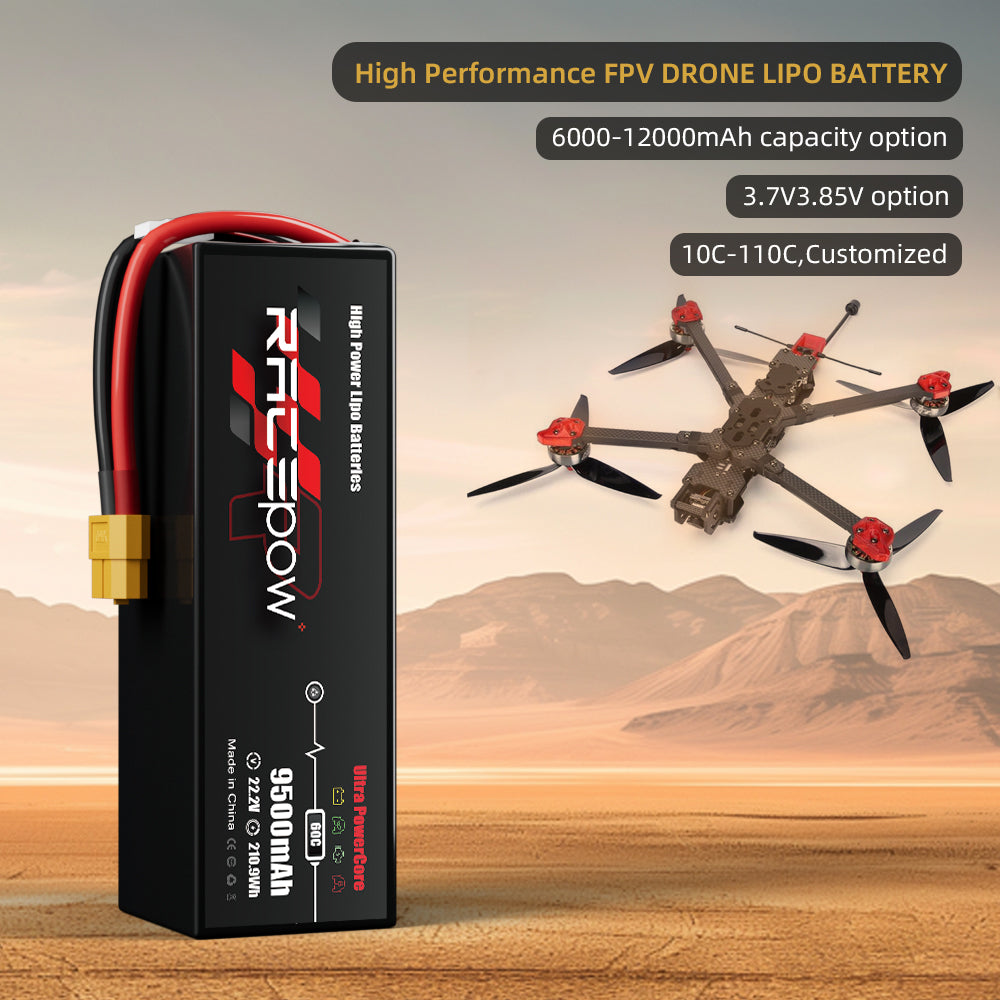 9500mAh 22.2V 6S 60C LiPo Battery for FPV Drone