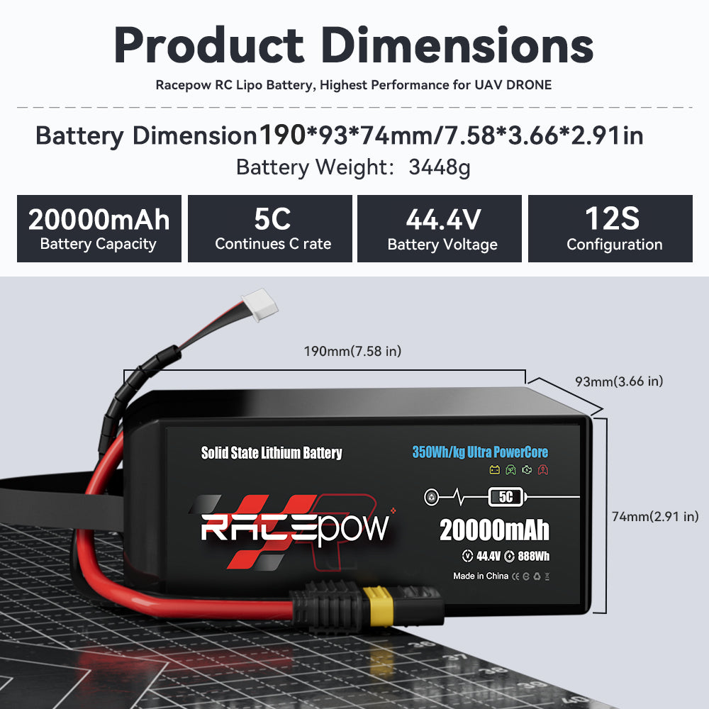 350Wh/kg 20000mAh 44.4V 12S High Energy Density Solid State Battery for UAV