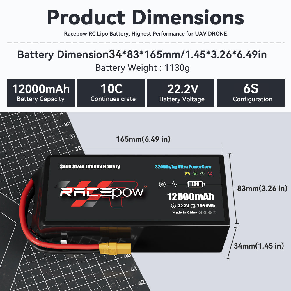 320Wh/kg 12000mAh 22.2V 6S High Energy Density Solid State Battery for Drones Multi-rotor VTOL Mapping