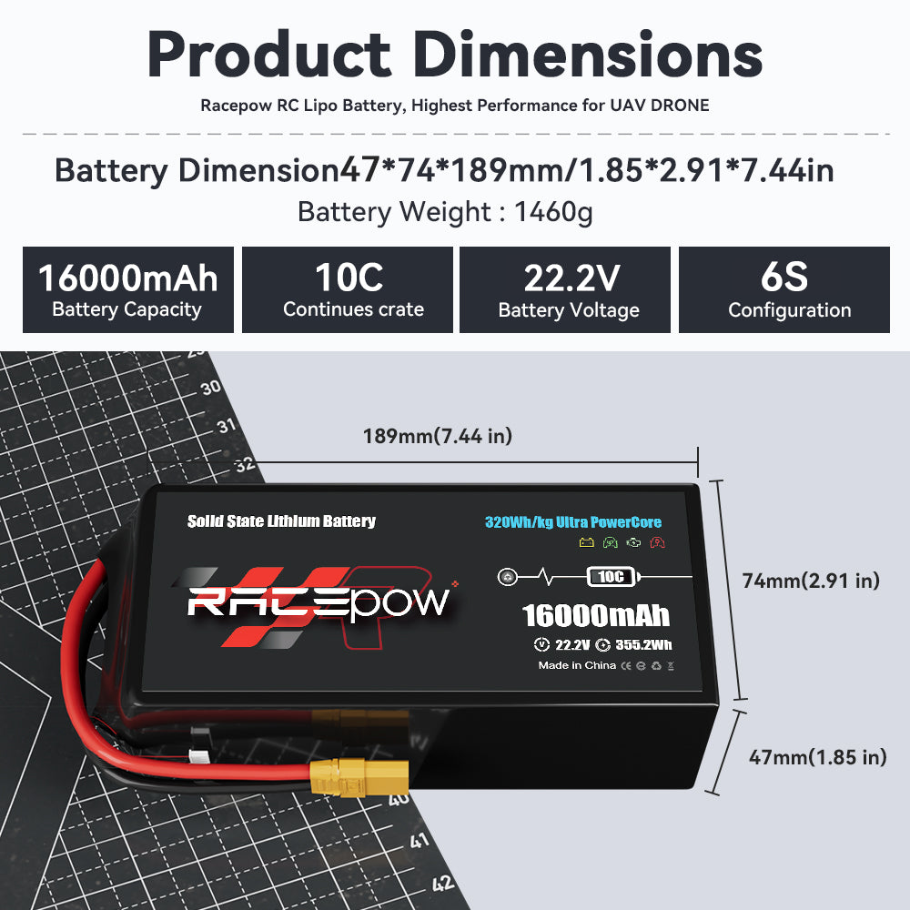 320Wh/kg 16000mAh 22.2V 6S High Energy Density Solid State Battery for Drones Multi-rotor VTOL Mapping