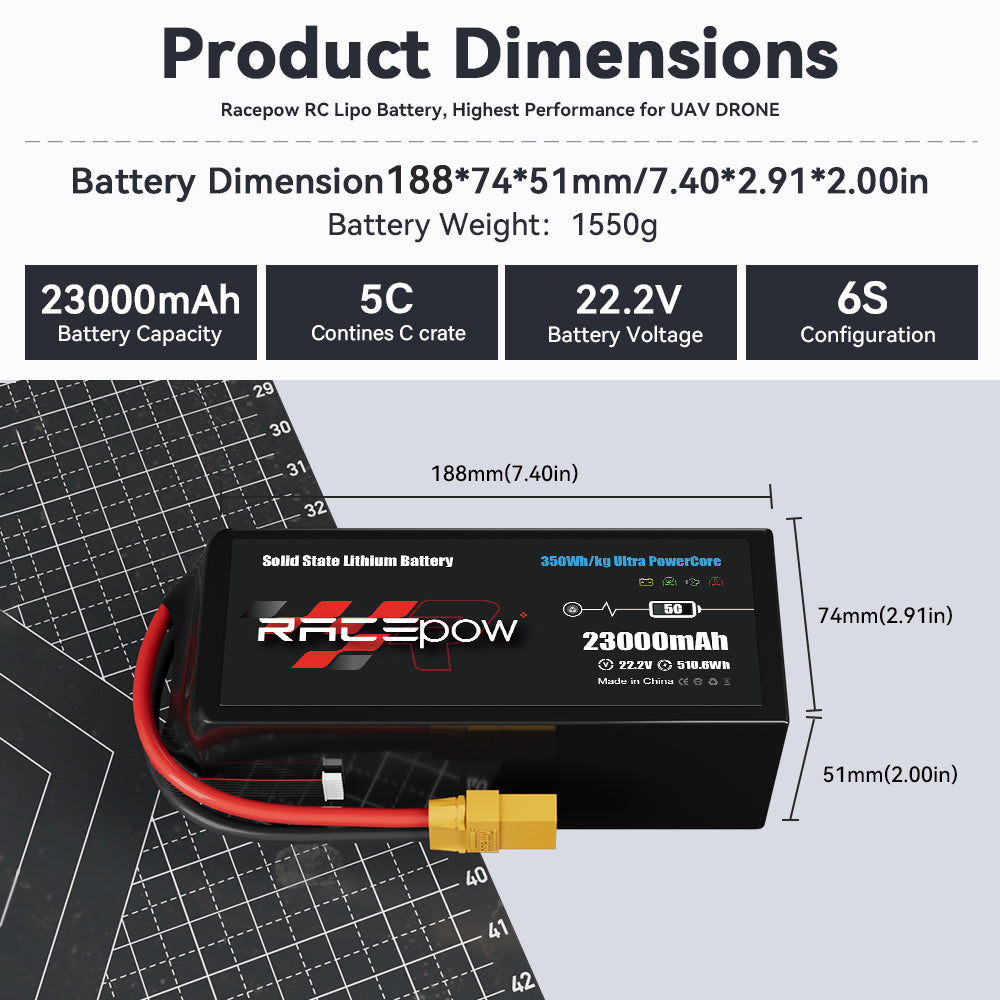 350Wh/kg 23000mAh 22.2V 6S High Energy Density Solid State Battery for UAV