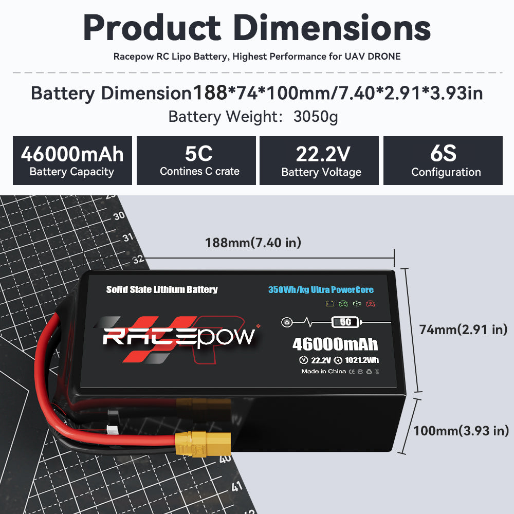 350Wh/kg 46000mAh 22.2V 6S High Energy Density Solid State Battery for UAV