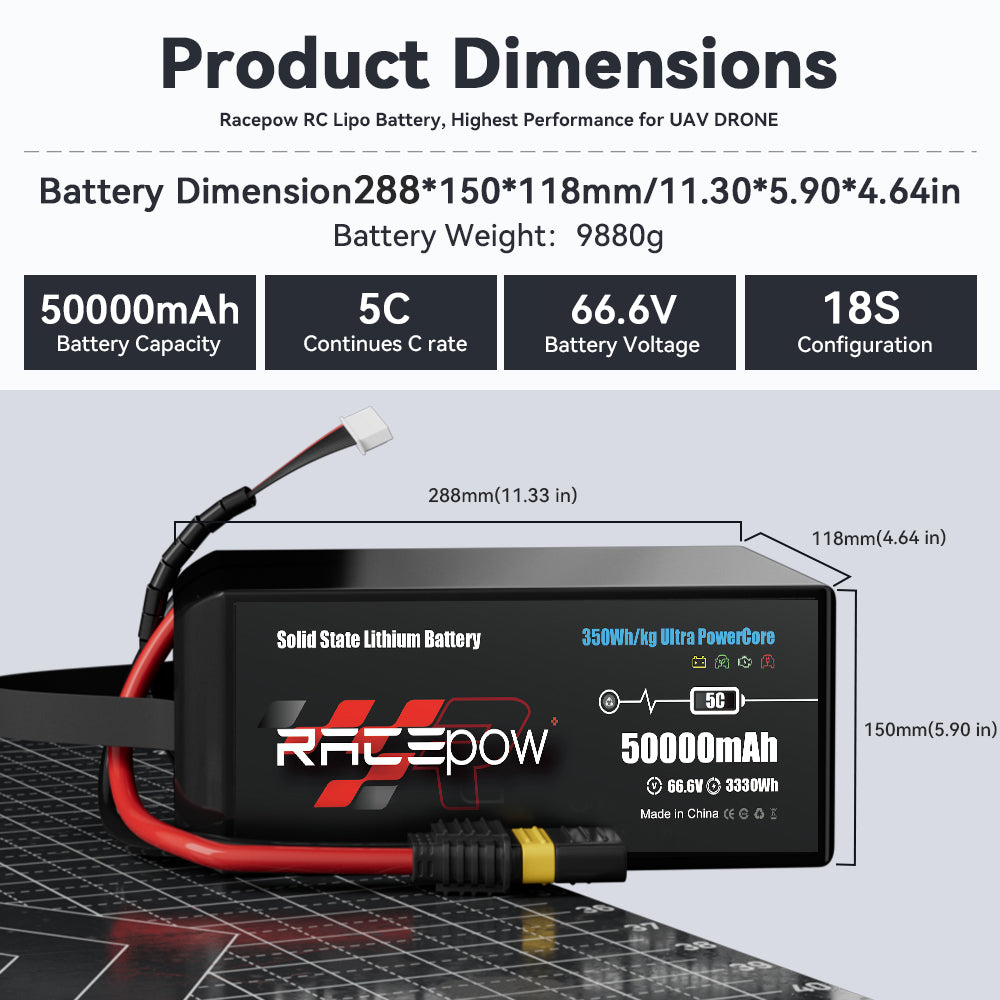 350Wh/kg 50000mAh 66.6V 18S High Energy Density Solid State Battery for UAV
