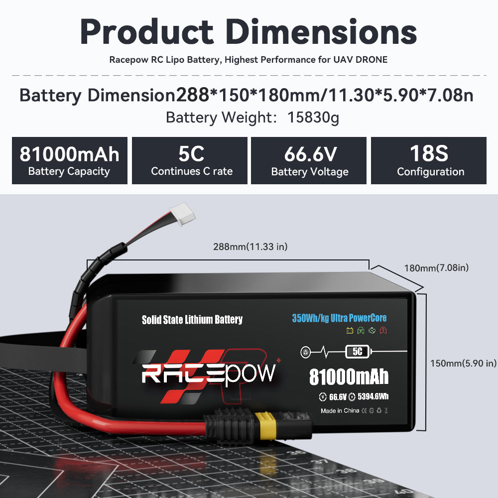350Wh/kg 81000mAh 66.6V 18S High Energy Density Solid State Battery for UAV