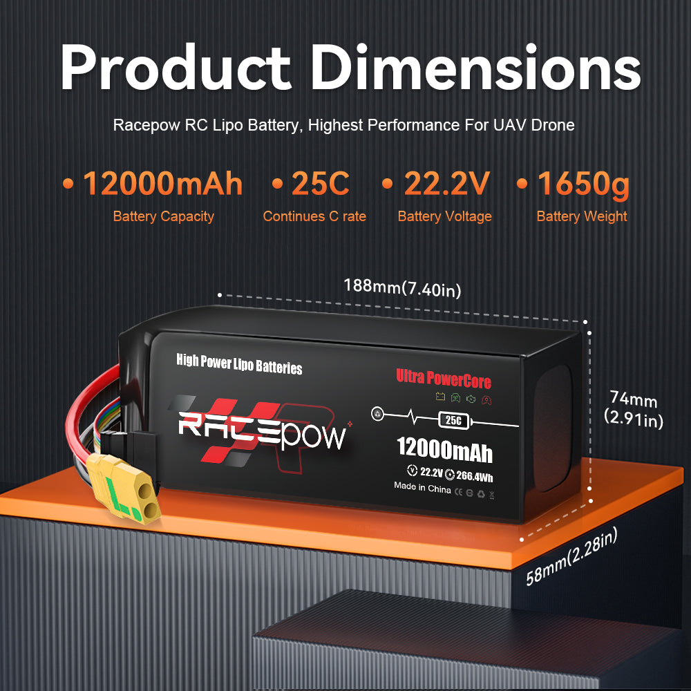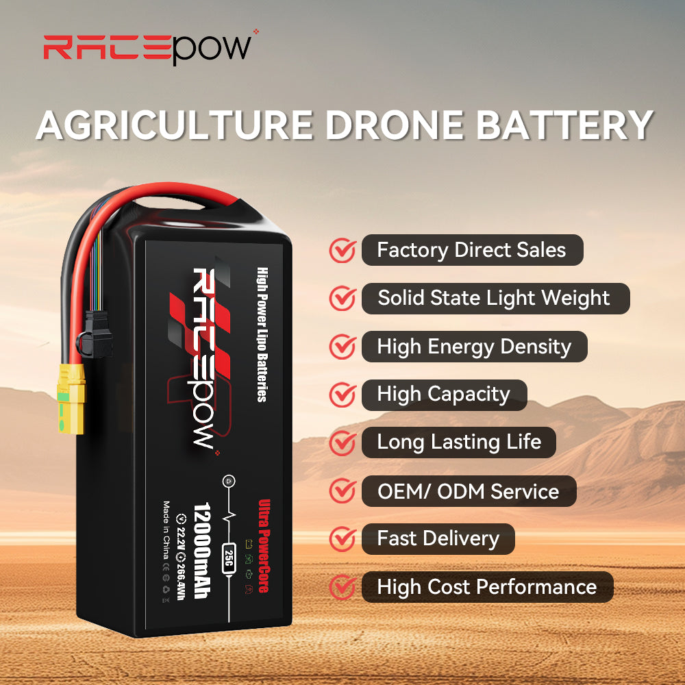 Büyük Yük Çok Rotorlu Hekzakopter Tarımsal Püskürtme İHA'sı için XT90-S ile 12000mAh 22.2V 6S 30C LiPo Pil